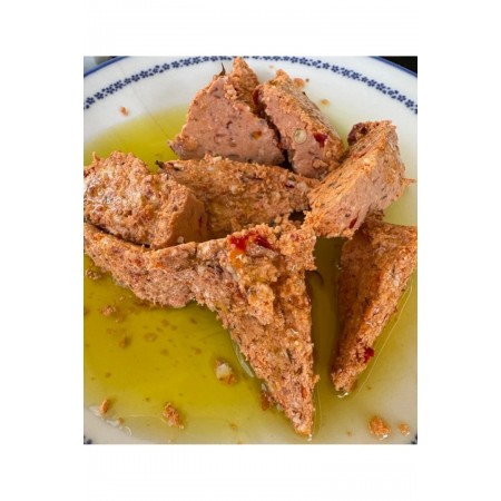 Kekik, kimyon, pul biber, çörek otu gibi baharatlar ve biraz salça ile yoğrulup şekil verilir. Güneşte kurutulmadan streç filme sarılır. Güneşte kurutulup küflenmeye bırakılmamıştır.3 Adet
